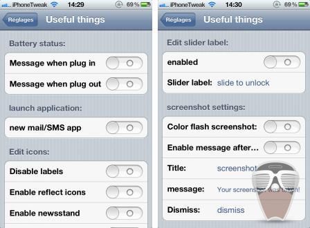 Useful Things est un tweak disponible sur Cydia. Compatible avec tous les iDevices, il vous permet de personnaliser encore un peu plus vos bijoux.