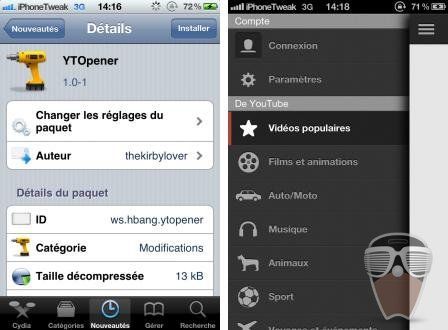 YTOpener est un tweak disponible sur Cydia qui permet d'ouvrir les liens Youtube directement dans la nouvelle application disponible sur l'App Store.